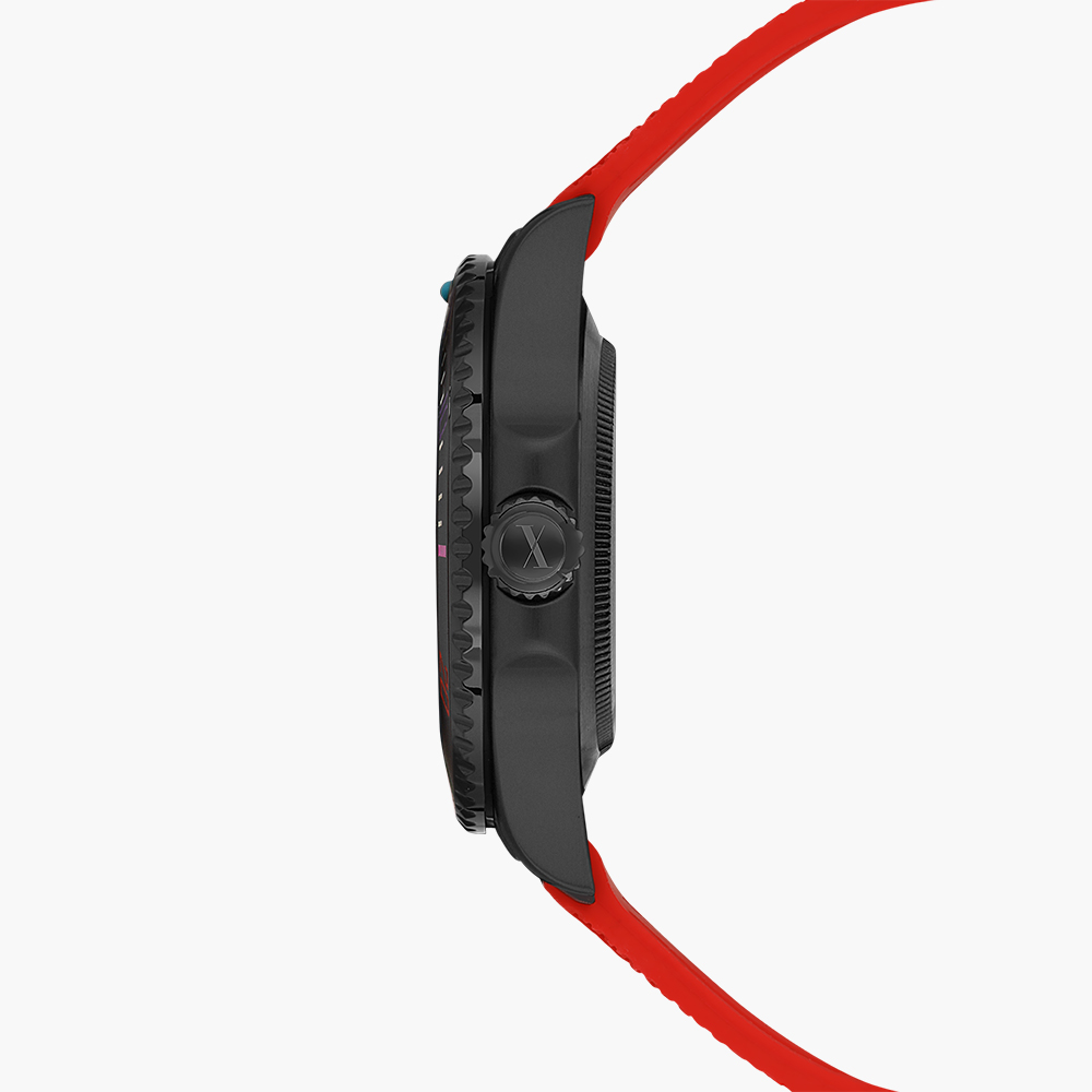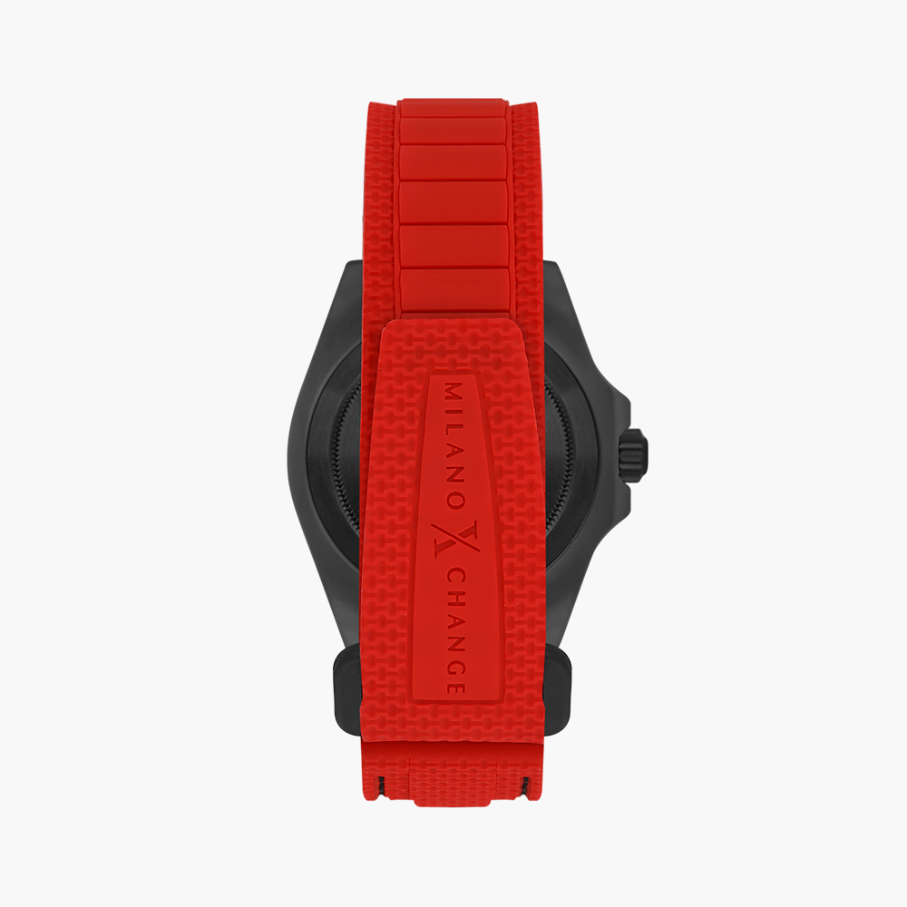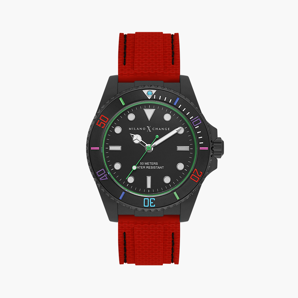 Plastic case, Analog quartz movement, Black dial, Magnetic silicone strap