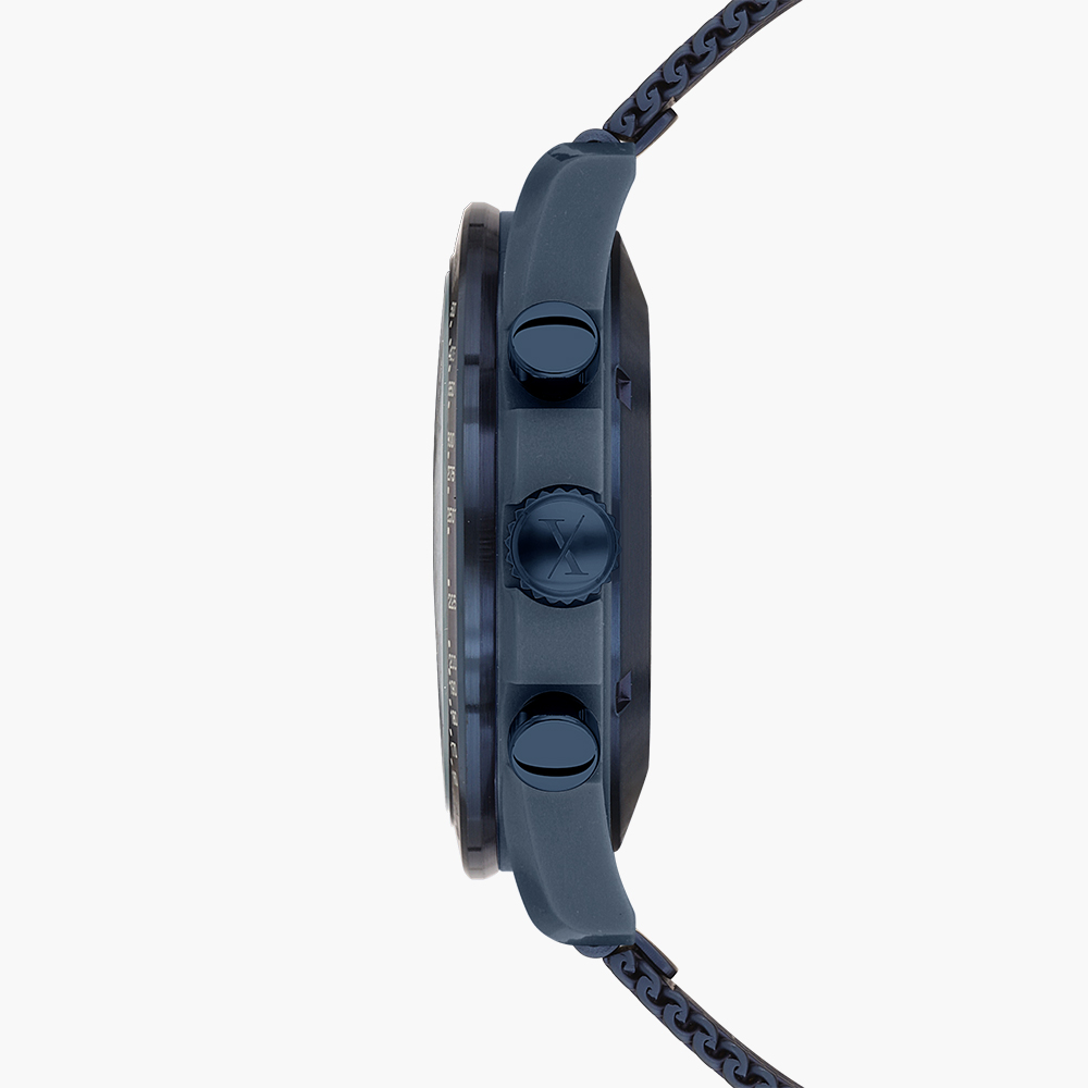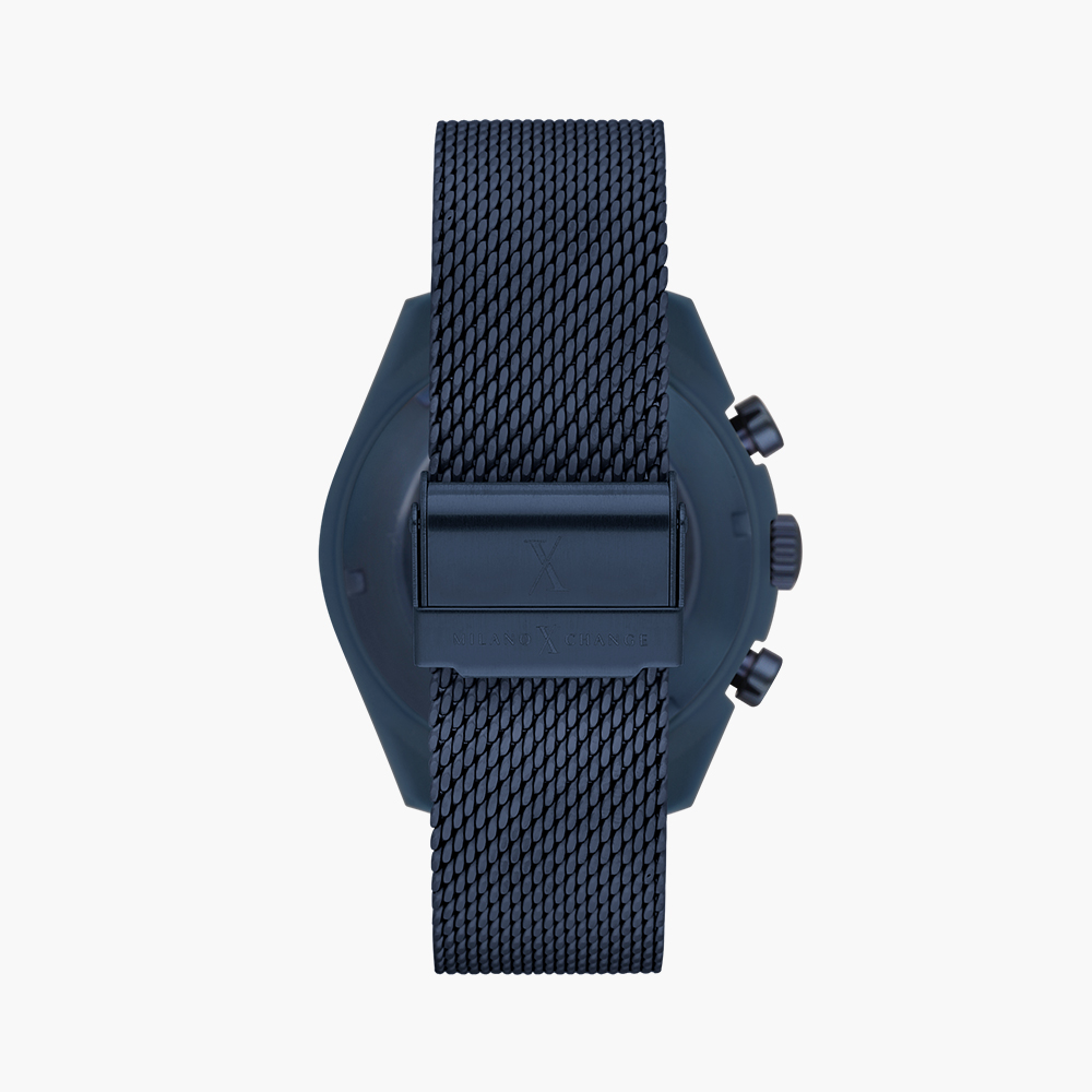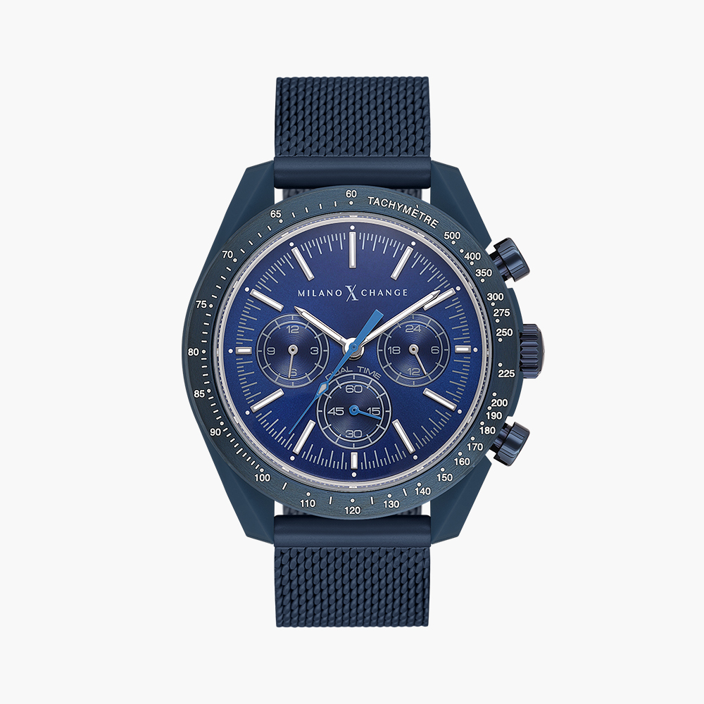 Plastic case, Analog quartz movement, Blue dial, Mesh bracelet