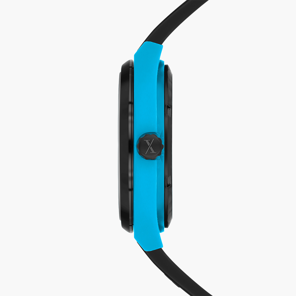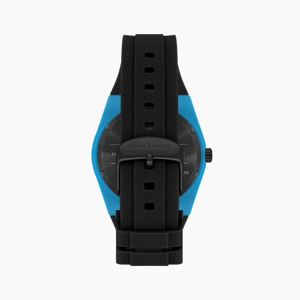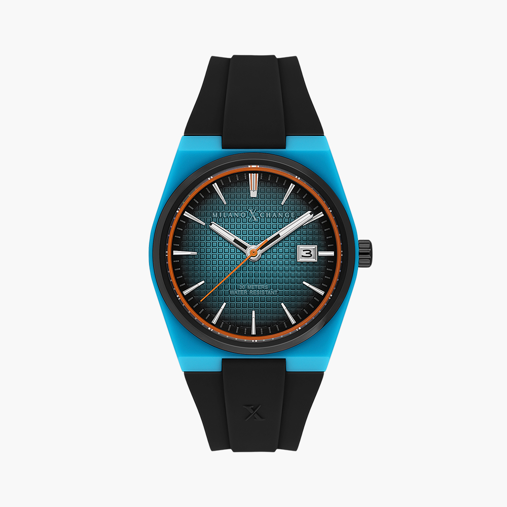 Plastic case, Analog quartz movement, Blue dial, Silicone strap