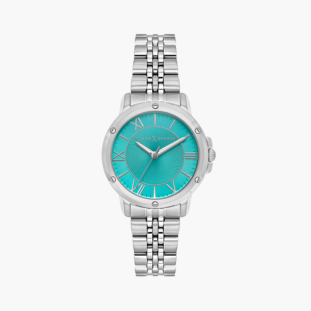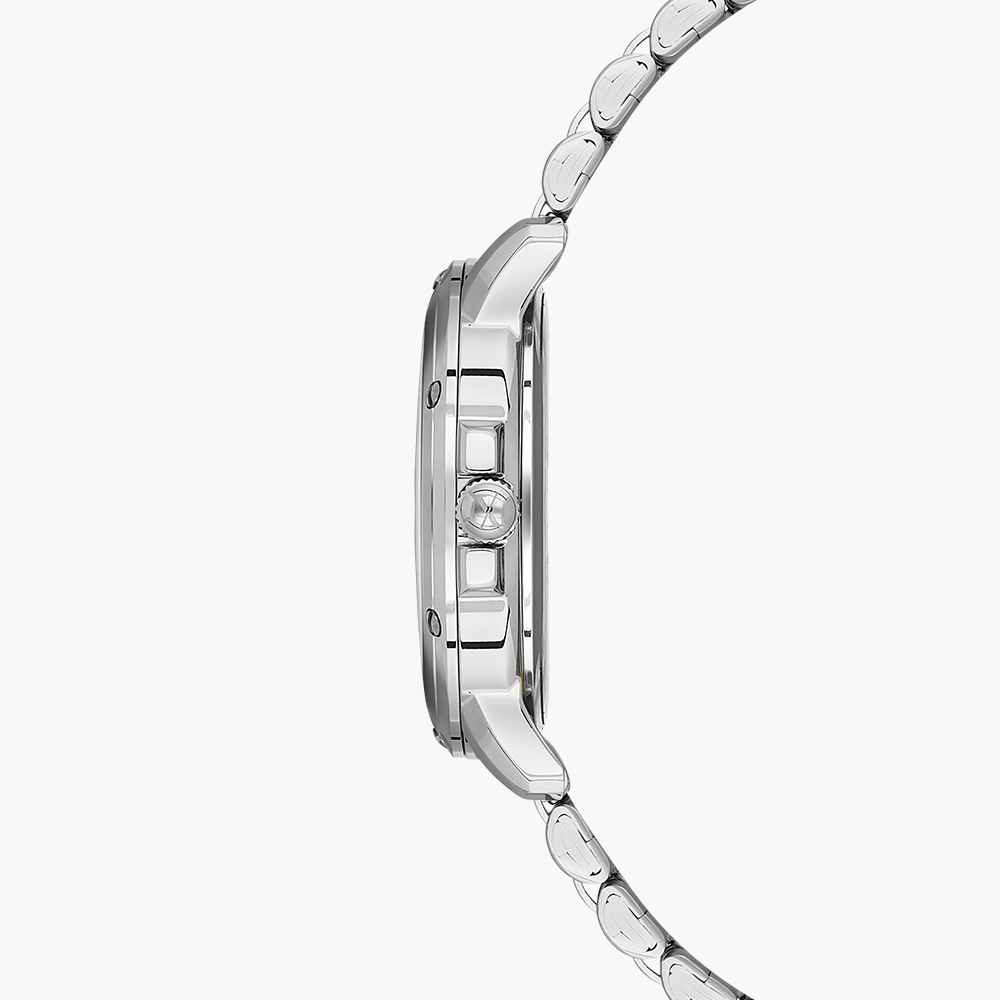 Stainless steel case, Analog quartz movement, Blue dial, Stainless steel bracelet