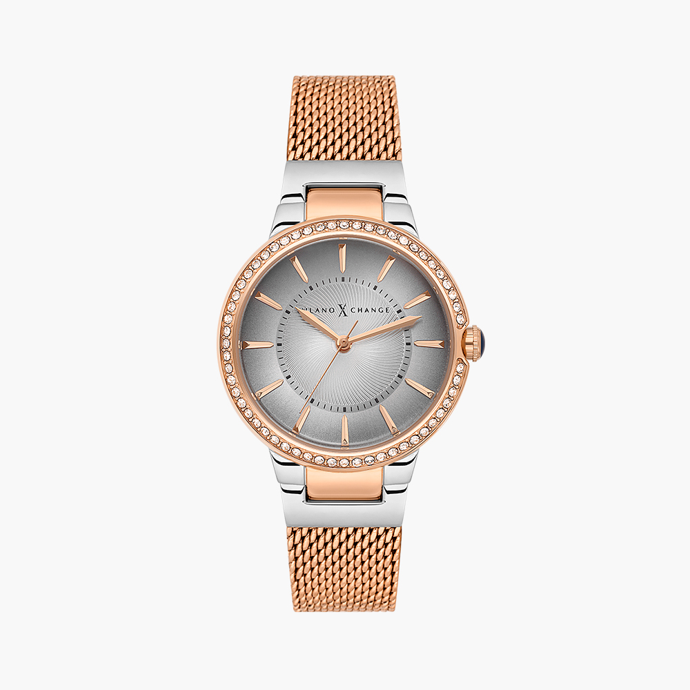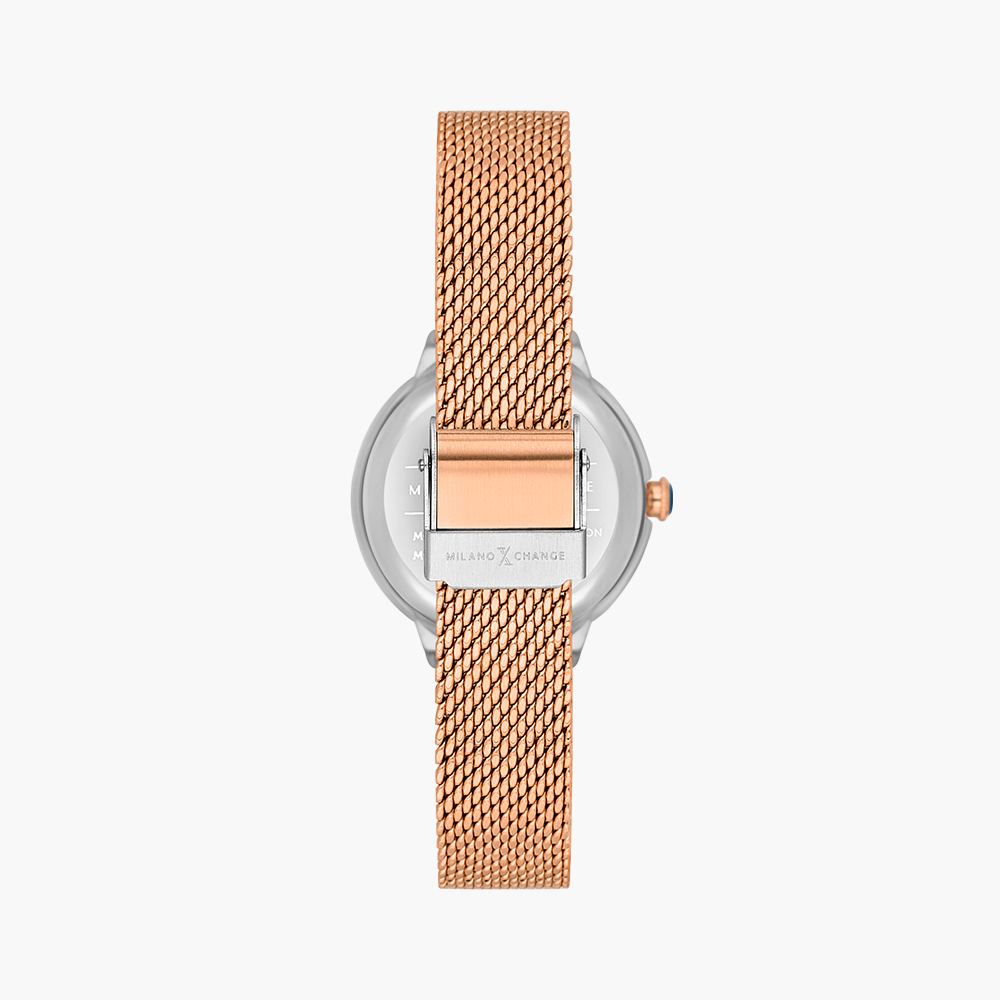 • Rose gold plated & steel color case