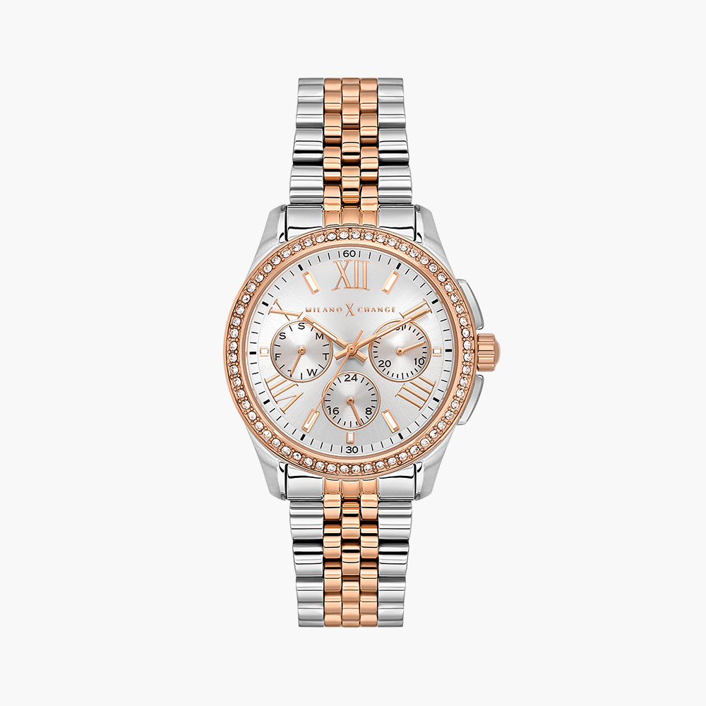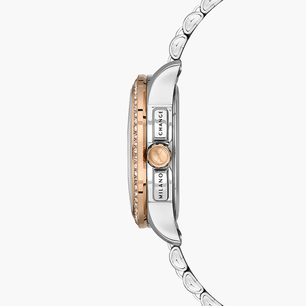 • Rose gold plated & steel color case